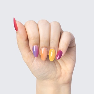 Our GLAM & GO gel nail wraps ensure that no matter how complex your chosen nail design, the application process remains incredibly simple. Our GLAM & GO gel nail wraps require no glue, base coat, or top coat—just peel them off the packaging, apply them to your nail, trim to size, cure twice, and voilà!
