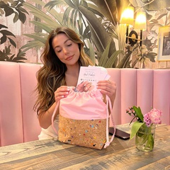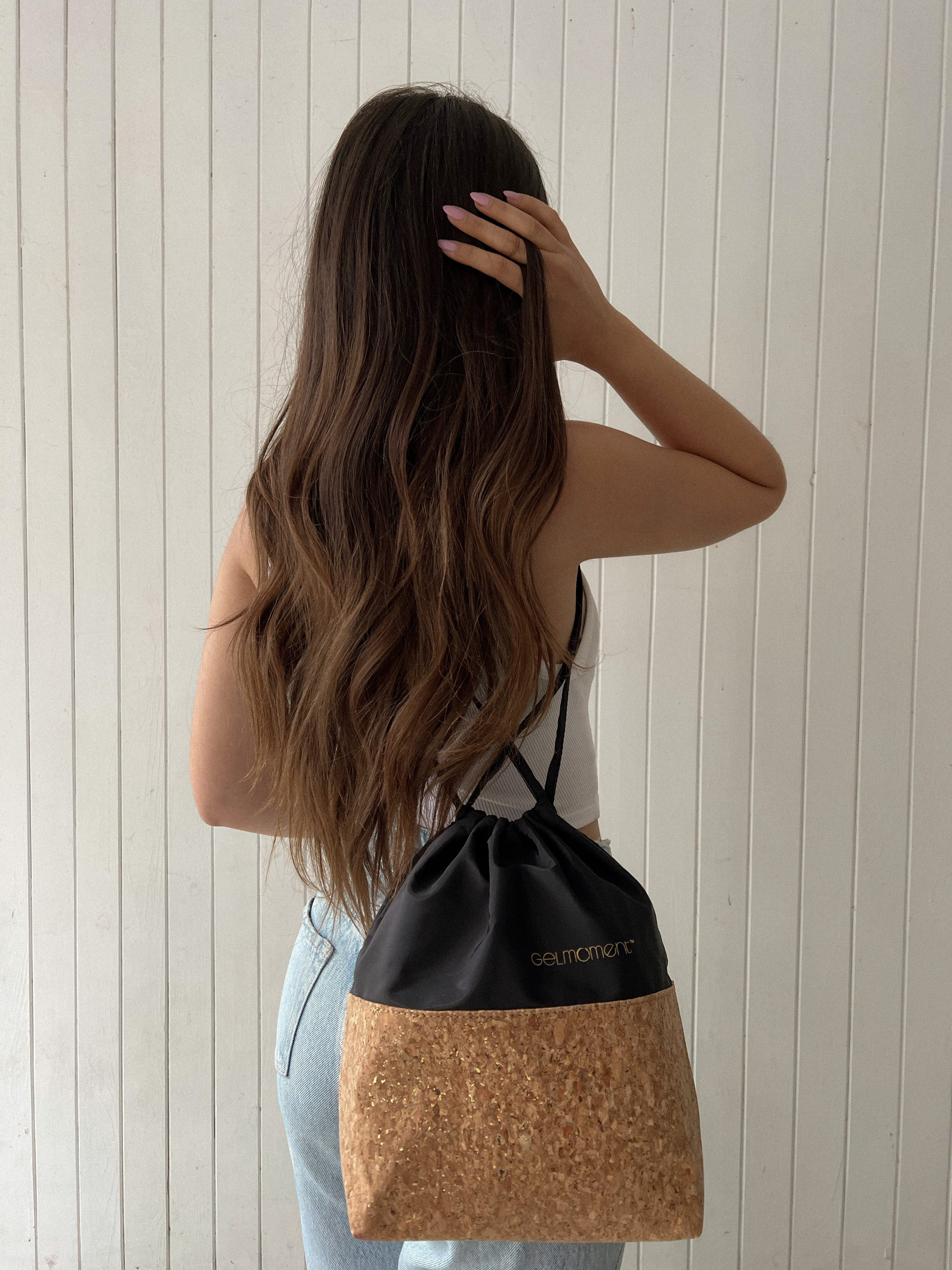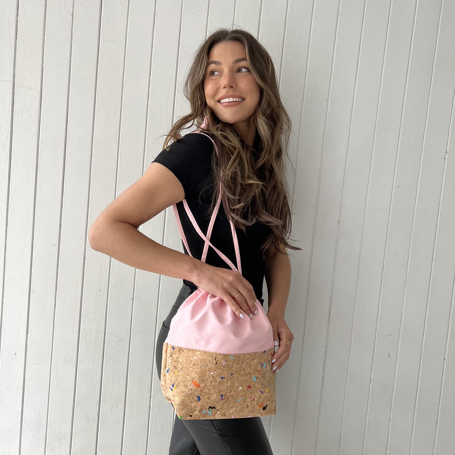 GelMoment’s Cork Drawstring Bag is as sturdy as it is stylish. Tote around your smaller essentials in this perfectly sized and uniquely designed drawstring bag. You have two colour schemes to choose from: cork base with multicolour speckles, pale pink vinyl upper body, and white GelMoment logo; or cork base with gold speckles, black vinyl upper body, and golden GelMoment logo.